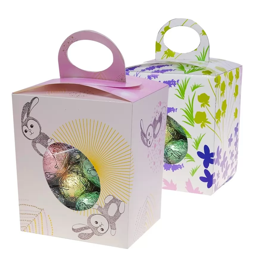 Easter Window Eggs Box Cutie cu 200 G de oua din ciocolata belgiana Valentino. Contine praline delicioase cu 100% unt de cacao, intr-un ambalaj simpatic pentru cineva special.