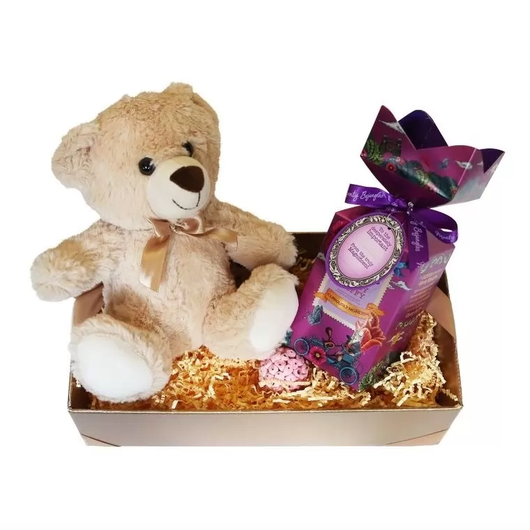 Pachet cadou pentru copii cu ursulet de plus si trufe de ciocolata Monty