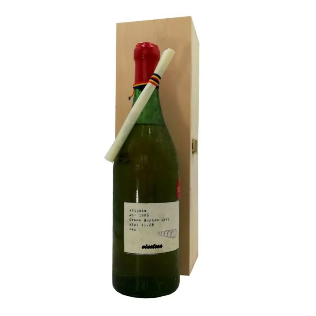 Vin alb Aligote Bucium 1986 in cutie de lemn